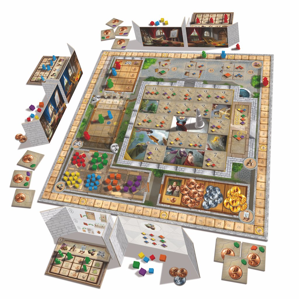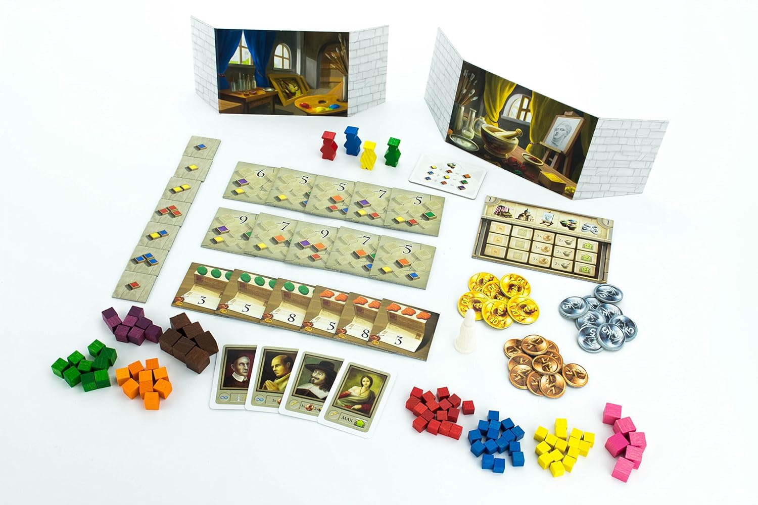 Then, players decide their actions for the turn, deploying their apprentice work force to various tasks. You'll need to buy paint, mix paint, work on painting the fresco, raise money (which you'll need to buy the aforementioned paint!) by painting portraits, and perhaps even send your apprentices to the opera in order to increase their happiness. Points are scored mostly by painting the fresco, which requires specific combinations of paints, so you'll need to buy and mix your paints wisely, in addition to beating other players to the paints and fresco segments you would like to paint.