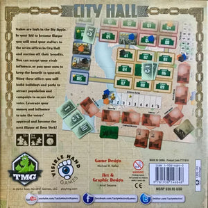 City Hall sees players competing to become Mayor of New York City. They do this by attempting to be the most successful at both bringing people into the city as well as campaigning for the citizens' approval. Whoever best balances these two goals will win the election.