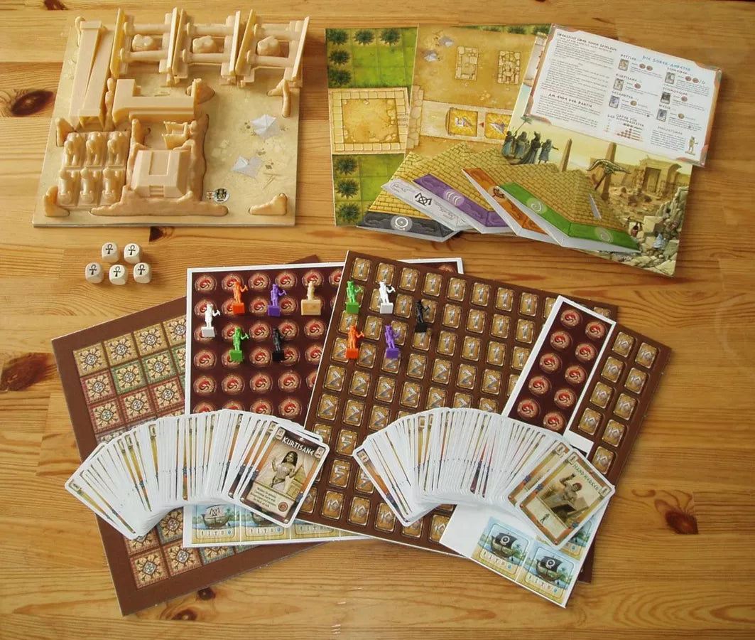 Cleopatra & the Society of Architects is a fun and engaging family game unlike any you've played before. Inside this box you will find a three-dimensional palace that you race to build against your fellow players. Corrupt officials and building materials of dubious origin may help you stay ahead, but beware: the price of corruption is sure to be high!