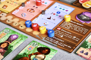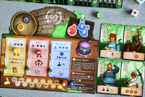 Potions of Azerland utilized a unique simultaneous action selection mechanism where understanding the goals of your opponents in each round will give you the upper hand. Decide whether to drink your newly made potions for temporary boosts and prolonged powers or give them to an ever changing group of travelers for points and other bonuses.