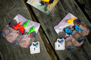 Each round, players add their birds into a shared bag. Players then draw birds of their own, and other players take turns stacking birds on location tiles. Each location tile will award variable points for majorities and sometimes grant players a unique ability. The game ends after five rounds, and the player who has earned the most points wins.