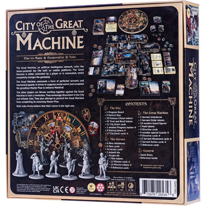 City of the Great Machine may be played as One-vs-Many (2-4 players) or cooperatively/solo (1-3 players).