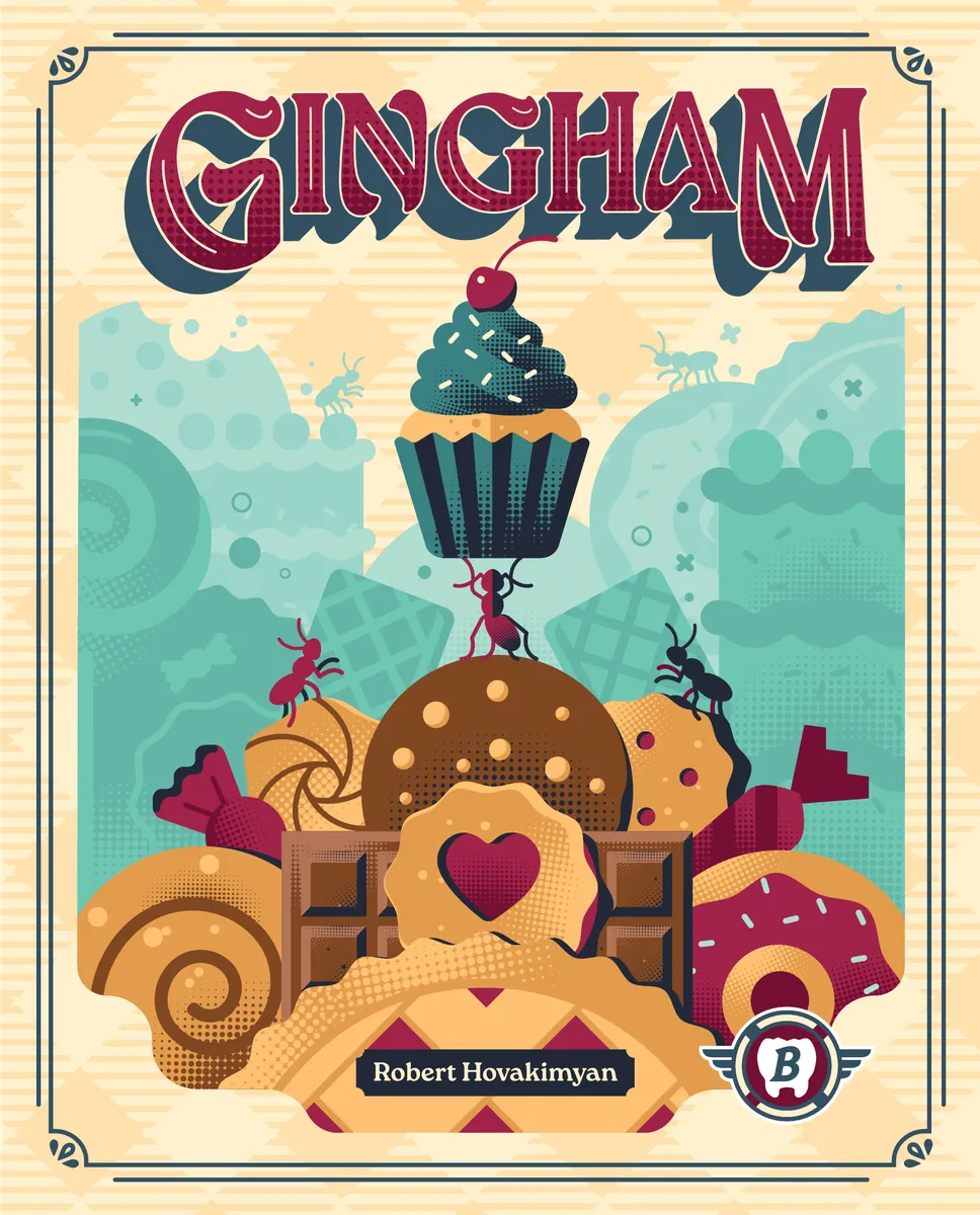 Gingham is a tricky game of confection connection. In this game, players position their queens around the gingham picnic blanket and deploy their ants to connect sweets and claim the stockpiles they create.