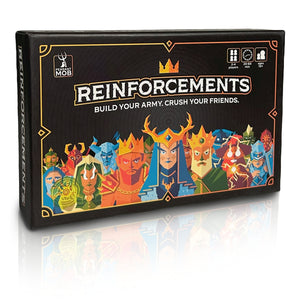 REINFORCEMENTS is a strategic battle card game where 2 -4 players build up powerful armies and compete to be the last one standing. It’s a simple card game that’s easy to learn but packs a board game punch! Each player takes turns drawing from a shared deck containing cards from 3 distinct kingdoms, each with unique art and special abilities. Using these cards players build up their army to unlock additional actions and attack their foes using powerful combos. In Reinforcements you can blast your foes with magic, hire deadly mercenaries, incite a peasant mob, and summon mythical totems. When two cards of the same power collide, it's time to call in REINFORCEMENTS! Both player’s shout exuberantly and draw two cards from the deck to decide the battle. Do you have what it takes be the last player standing?