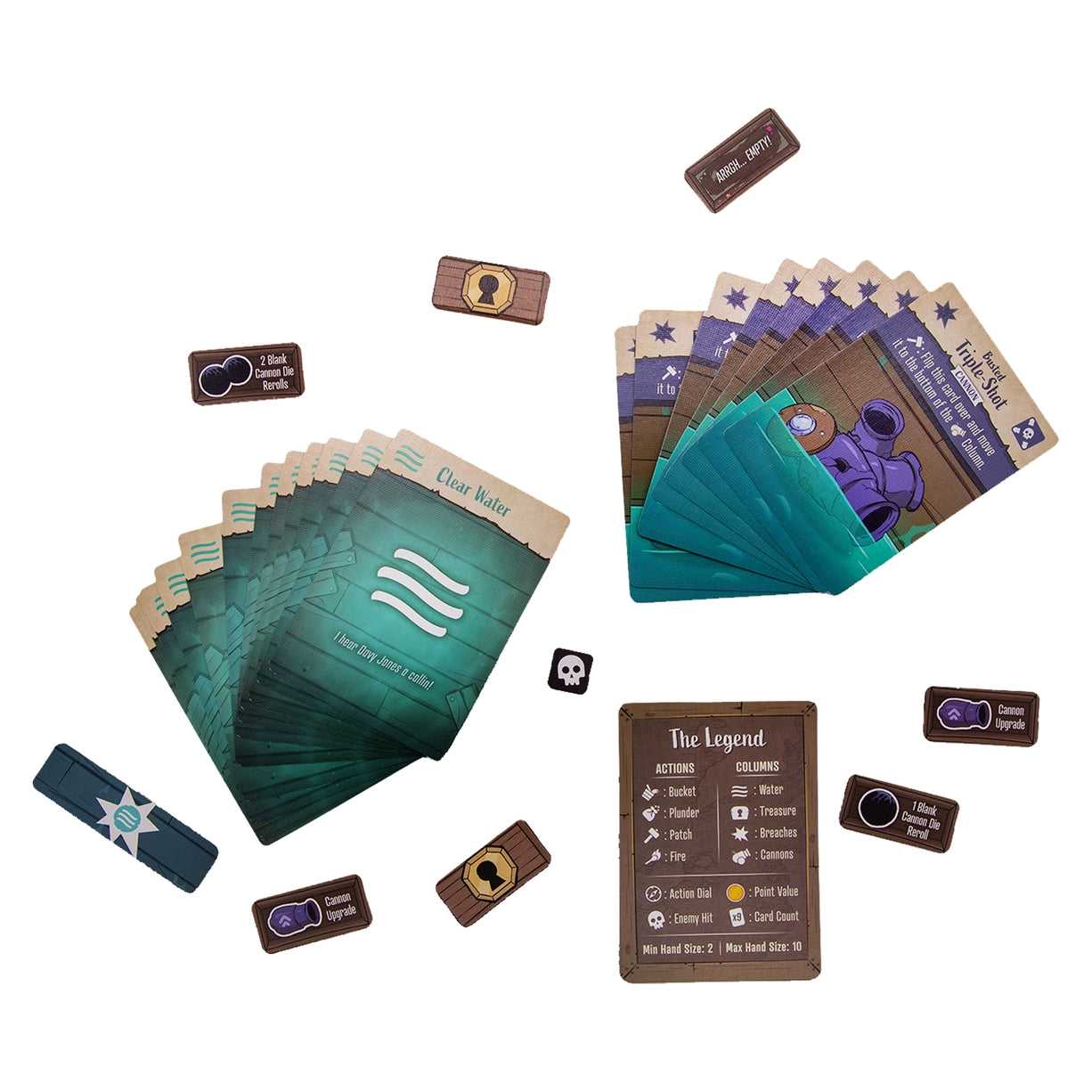 A pirate's life is all about the treasure — or surviving to tell the tale! Turn yourself into a legend by defeating the enemy, saving the ship, and having the most valuable loot in your hand...but if the ship does sink, be the pirate who survived to tell the tale by having the fewest cards in your hand so that you can be light enough to flee on the lifeboat.