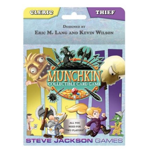 Munchkin Cleric & Thief starter set is a combat game in which players level up turn after turn, put loot into play to give themselves benefits, and attack (or bluff attacks!) against one another. Eliminate the other player first, and you win the Munchkin Cleric & Thief game!