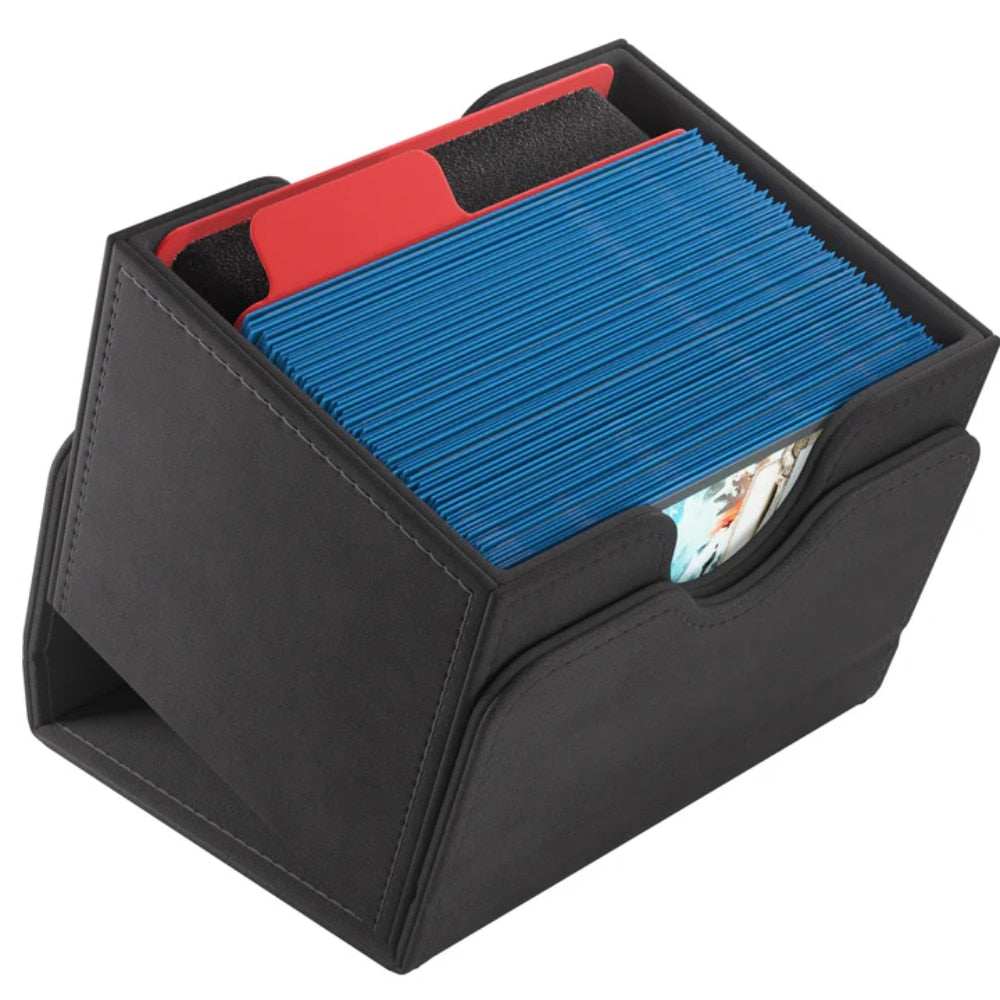 The most popular add-on from the incredibly successful Kickstarter campaign will now be available in sideloading format! The Sideloading Sizemorph Divider, our brand-new innovation, is probably the first divider on the market that can change its width to fit into almost any unused horizontal box space. It is a perfect match for all sideloading boxes and tidies up your deck box! No matter if you want to fill up space between two decks of cards or keep your deck boxes safe. Its width can vary between 5 and 30 millimeters, allowing maximum flexibility. The foldable register tab will bend back and unfold when the box is opened.