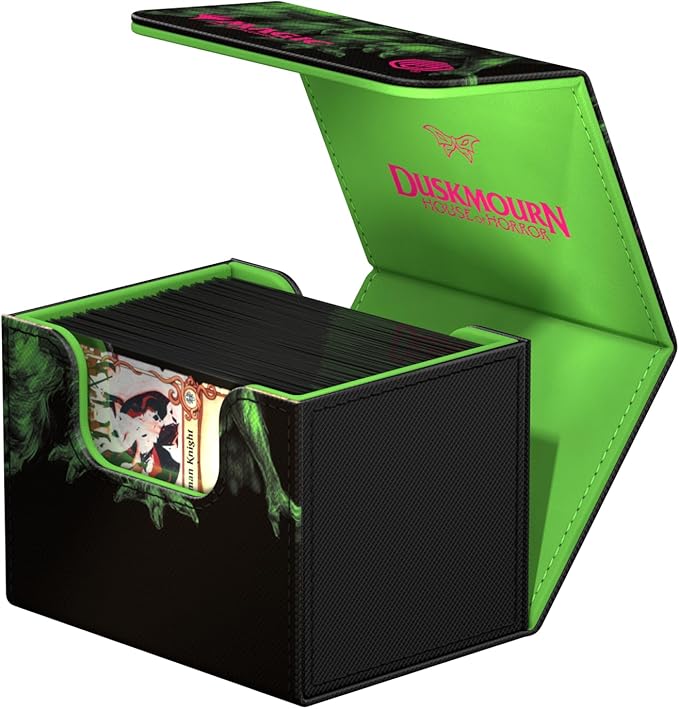 The mysterious Double Exposure artworks from Duskmourn: House of Horror not only delight in the cards from Magic: The Gathering's new set, but also in our Sidewinder deck boxes! Will you join the Rescue Squad around Tyvar, Zimone, Kaito and The Wandering Rescuer? Will you side with the legendary villains in the never-ending haunted house? Or do you just think Kona, Rescue Beastie is cute? The choice is yours! Our Sidewinder 100+ Xenoskin are printed in full color with officially licensed Magic: The Gathering artwork. The deck boxes are made of durable Xenoskin material and have a high-quality microfiber inner lining. The sidewinders offer space for 100 double-sleeved or 120 single-sleeved cards - and are a perfect match for the Omnihive 1000+ Xenoskin from the Duskmourn series!