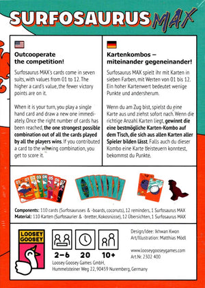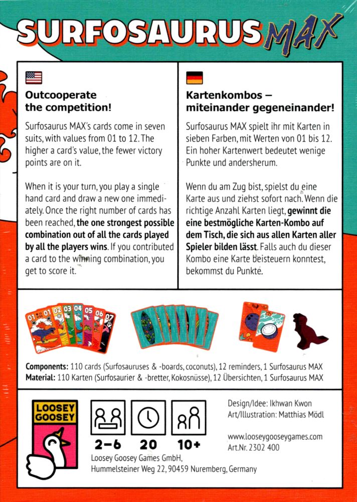 Surfosaurus MAX's cards come in seven suits, with values from 01 to 12. The higher a card's value, the fewer victory points are on it.