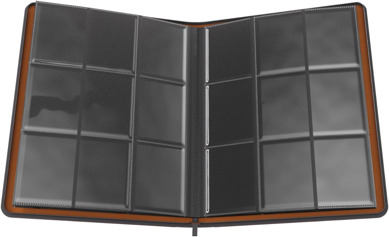 The inside of the Zip-Up Album is covered with a soft microfiber lining. A reinforced, rigid cover adds protection to keep card collections safe. The album holds 20 pages with 18 side-loading pockets each for a total capacity of 360 cards (even double-sleeved). A durable zipper closes this album from all sides.