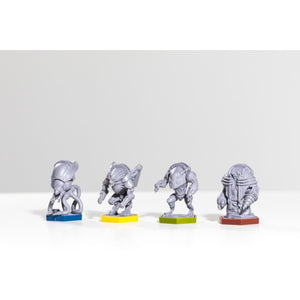 The Exosuit Miniatures Set adds 24 super-sized (55 mm tall) Exosuit miniatures to Anachrony, replacing the cardboard Exosuit hex tiles.