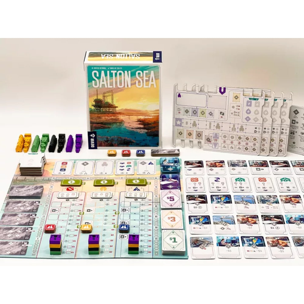 Designed by David Bernal and illustrated by Amelia Sales, Salton Sea can be enjoyed alone or in groups of up to four players in sessions lasting about 120 minutes. During the game, players must manage their geothermal lithium extraction companies to obtain the greatest number of points. The extraction of this material and its subsequent processing will be the driving force of your companies.