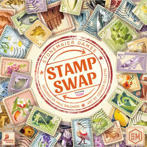 Stamp Swap is a game about stamp collecting by Paul Salomon (designer of Honeybuzz). Over the course of 3 rounds, players will draft stamps before creating two piles out of the stamps they drafted. They will then pick one pile from one other player in an I-cut-you-choose style, before placing their stamps in their display to maximize scoring objectives. With a similar game weight and price to Cascadia, this game falls on the lighter complexity end of Stonemaier games, while still keeping a Euro core to its gameplay.