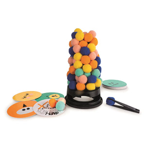 Draw a card a remove that color of fuzzy using either tweezers or your fingers but you can not get out of your seat. Stick it anywhere higher on the tower.