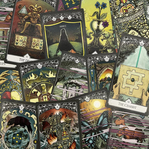 The tarot deck contains 78 cards--56 Minor Arcana and 22 Major Arcana, the latter of which each represent a puzzle. Puzzles are solved using sets of Minor Arcana cards and clues from the story booklet and result in solution keywords that lead players to discover new pieces of the narrative. Some story passages grant items which can be later used to unlock extra scenes, and some puzzles have multiple answers, allowing players to unlock more of the story if they find all the solutions.